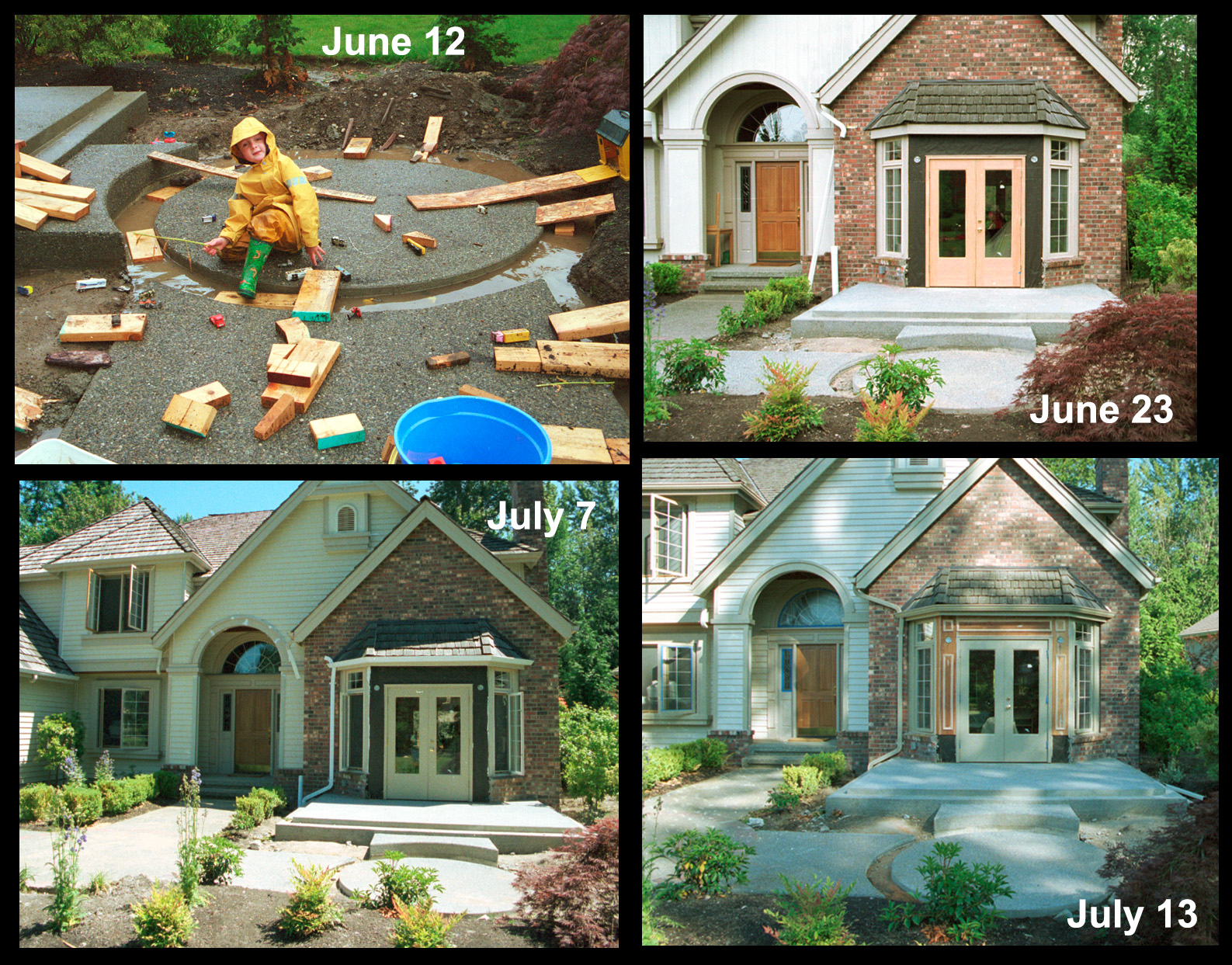 Galleries2001 remodel6-12-to-7-20-01-front-right.jpg Brandon made inventive use of the wet weather, spare bits of wood and channels for bricks to play harbormaster