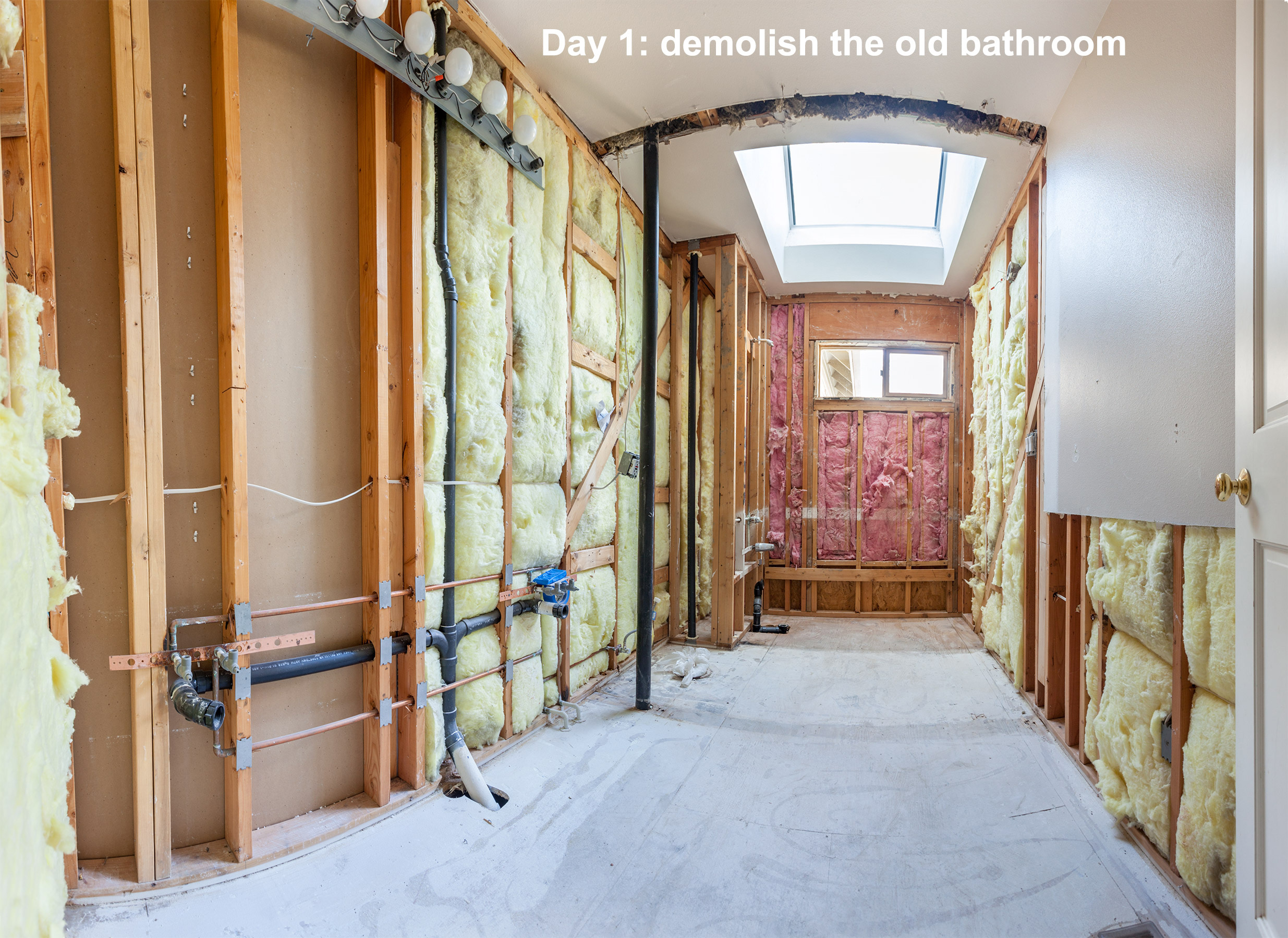 GalleriesRemodel week-by-week150316_0019-26-day-one-pano.jpg We needed one working bathroom so first task was to work on the wet room